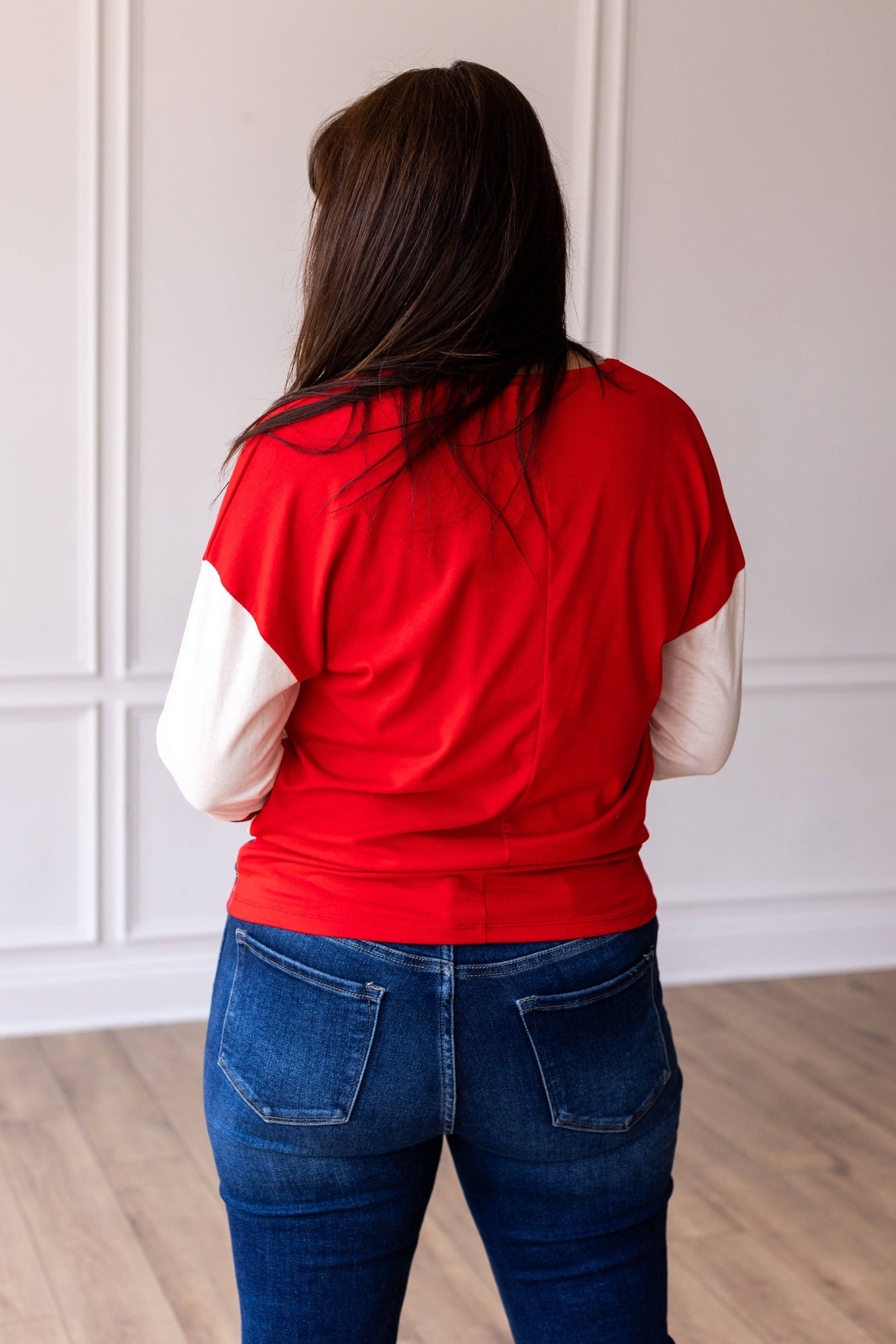 The Chic Yuletide Color Block Top: Red / Small destined to impress, and priced at only $11.25, for a limited time.